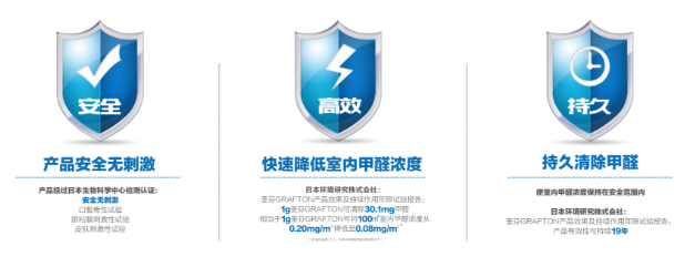 日 本GRAFTON株式會(huì)社,十三年來致力于將甲醛降低到無限趨近于0,保護(hù)兒童遠(yuǎn)離由甲醛污染引起的白血病等危害。旗下GRAFTON除醛系列產(chǎn)品,性能 領(lǐng)先世界。銀光環(huán)境與GRAFTON株式會(huì)社達(dá)成戰(zhàn)略合作,引進(jìn)荃芬GRAFTON甲醛清除劑,為中國消費(fèi)者提供凈醛服務(wù),消除甲醛危害,保護(hù)家人健康。
