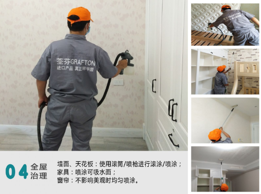 好產(chǎn)品還需要搭配好服務(wù),荃芬專業(yè)凈醛服務(wù),用目前世界上除醛性能卓越的荃芬GRAFTON甲醛清除劑(日本專利技術(shù)),通過荃芬專業(yè)化施工,保證了最大的甲醛清除速度及長達(dá)5~8年以上的效果保持。施工后快速將室內(nèi)甲醛濃度降低至安全范圍,并持久保持5~8年以上。保證了普通消費(fèi)者在日常生活中的室內(nèi)空氣安全,解決了消費(fèi)者面臨的室內(nèi)甲醛污染問題。