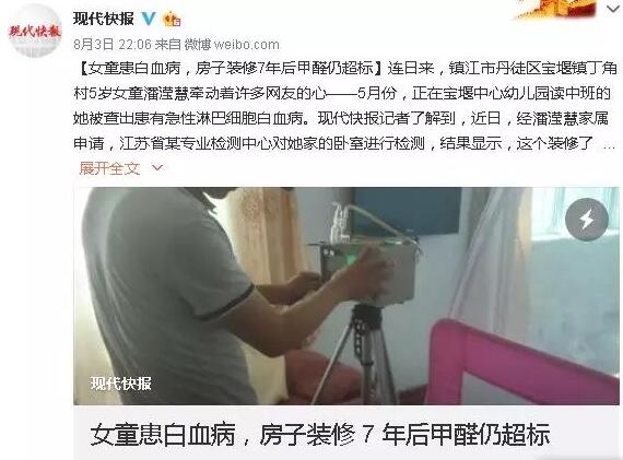這樣的新聞還是屢屢映入眼簾。南方都市報7月份就報道過在廣州珠江醫(yī)院兒童血液病病區(qū)里,60張病床的設(shè)置,50多個都是白血病患兒,而其中60%-70%患兒家中有過裝修史或者新裝家具史。