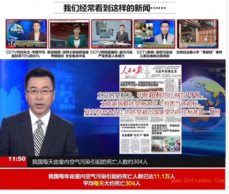 上海產(chǎn)業(yè)技術(shù)研究院《室內(nèi)空氣凈化器技術(shù)及產(chǎn)業(yè)發(fā)展研究》報告顯示:中國室內(nèi)空氣污染呈現(xiàn)出有別于歐美發(fā)達(dá)國家的特征。最突出的一點就是我國室內(nèi)空氣的化學(xué)污染物、特別是甲醛和TVOC超標(biāo)。