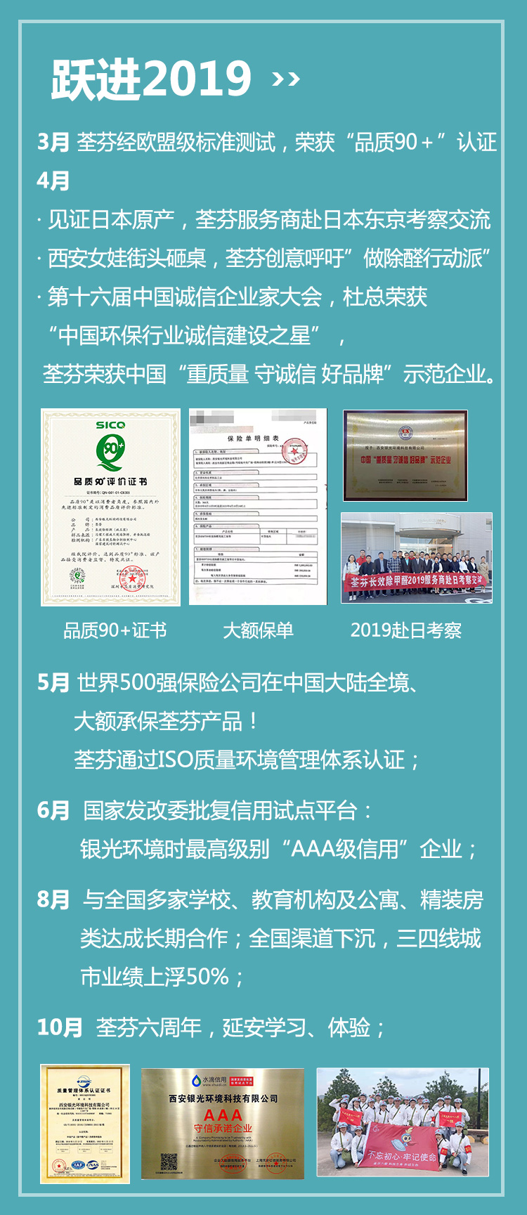 荃芬人不忘初心,始終牢記為中國家庭“荃力除甲醛”的使命,相信,荃芬人譜寫的“未來篇章”,將更加耀眼、輝煌!