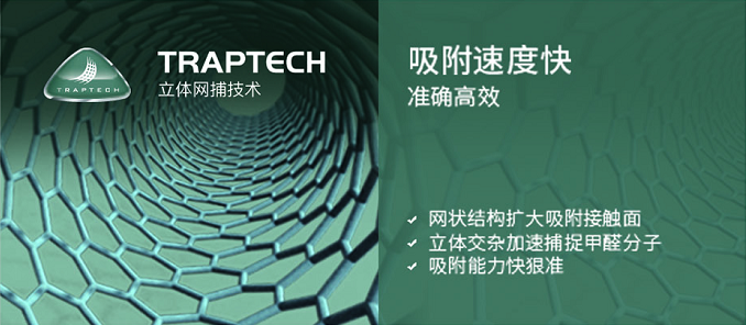 灰色小圓點為甲醛分子;荃芬產(chǎn)品蜂巢狀的分子結(jié)構(gòu),大小遠超甲醛分子,