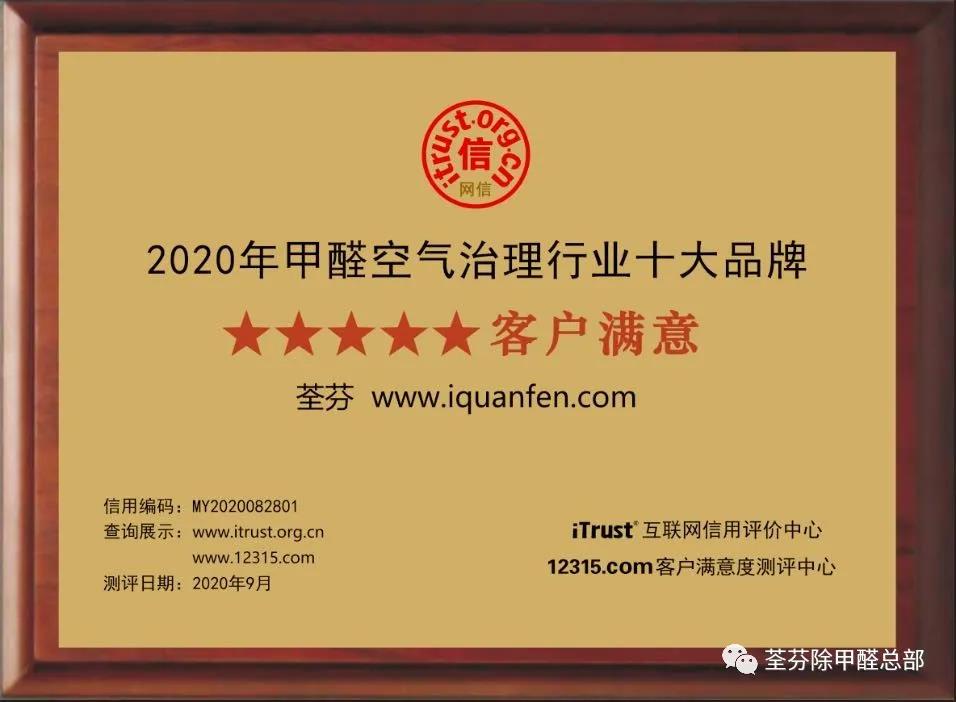 可以考慮荃芬氨基除甲醛——全屋治理服務(wù),長效、不反彈,且分解甲醛不依賴紫外線。2020年9月份,荃芬除甲醛榮獲iTrust(互聯(lián)網(wǎng)信用評(píng)價(jià)中心)消費(fèi)者滿意度第一。消費(fèi)者的好口碑,就是荃芬品牌七年發(fā)展的源源動(dòng)力!